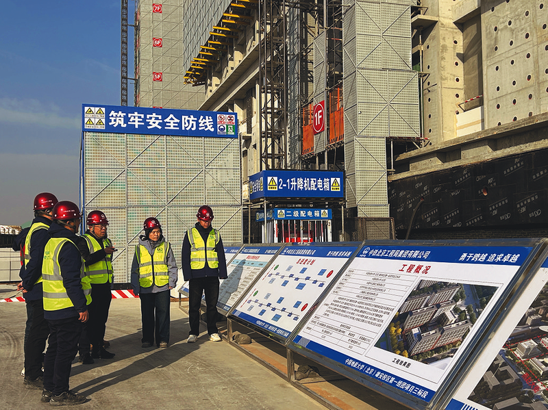 近日,中铁北京局北京公司组织在建项目开展“党建引领凝心聚力 筑牢安全生产防线”主题党日活动,引导党员干部落实安全责任,助力项目建设平稳推进。图为所属中国地质大学(北京)雄安校区项目党支部开展“党建+安全”专项检查。 张津瑜 摄