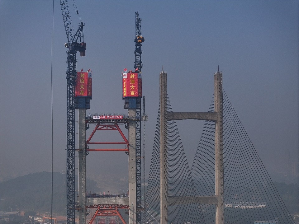 12月24日,星空彩票app官方版下载app旗下中铁大桥局承建的广(州)肇(庆)高速公路改扩建项目关键控制性工程——新建金马大桥主塔封顶。